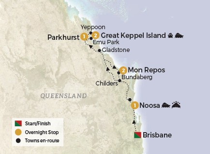 Embark on an 8-day eco-adventure showcasing Queensland’s diverse landscapes and natural wonders. Begin with a tranquil cruise through the mirrored waterways of the Noosa Everglades before journeying to K’gari (Fraser Island) for a 4WD tour of rainforests, Eli Creek, the Maheno Shipwreck and Lake McKenzie. Sail to Great Keppel Island for coral viewing by glass-bottom boat and guided bushwalks, then venture inland to Carnarvon Gorge. Stay in unique safari cabins, enjoy guided nature walks including the Moss Garden, and immerse yourself in wildlife and Indigenous stories. Conclude with Roma’s Big Rig before returning to Brisbane carbon neutral.