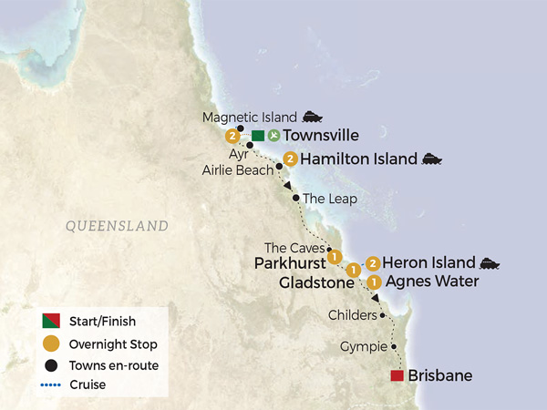 Embark on a 13-day Diamond Class journey showcasing the best of Queensland’s outback, rainforest, reef and islands. Begin in Cairns and cruise Lake Barrine before exploring the ancient Undara Lava Tubes. Discover the heritage of Charters Towers, enjoy a guided tour of Magnetic Island, and experience the turquoise beauty of the Whitsundays from Hamilton Island. Venture underground at the Capricorn Caves and unwind amid the pristine shores of Heron Island with guided eco walks and reef exploration. From coastal gems to volcanic wonders, this luxurious, carbon-neutral adventure reveals the essence of Queensland in comfort and style.