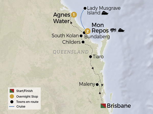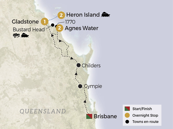 Discover Queensland’s natural wonders on this 9-day escorted journey. Travel in luxury aboard our carbon neutral Diamond Class coach and explore the rugged beauty of Carnarvon Gorge, with guided walks to ancient sandstone cliffs, lush Moss Garden, and rich wildlife habitats. Continue east to historic Greycliffe Homestead before venturing to Heron Island, a World Heritage listed coral cay on the Great Barrier Reef. Immerse yourself in eco-guided reef walks, birdlife encounters, and pristine beaches. Conclude with a coastal escape at 1770, including the thrilling amphibious LARC tour to Bustard Head Lightstation. An unforgettable mix of canyon, reef, and coast.